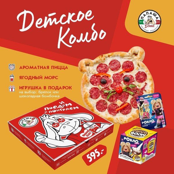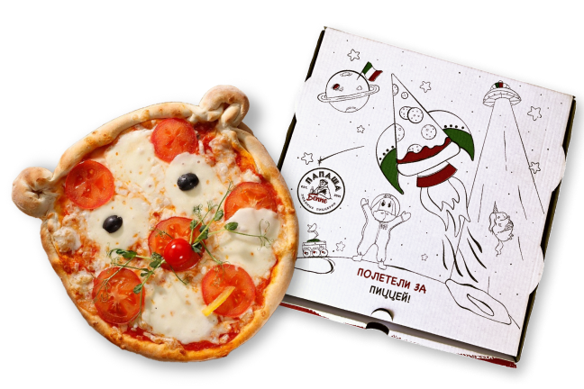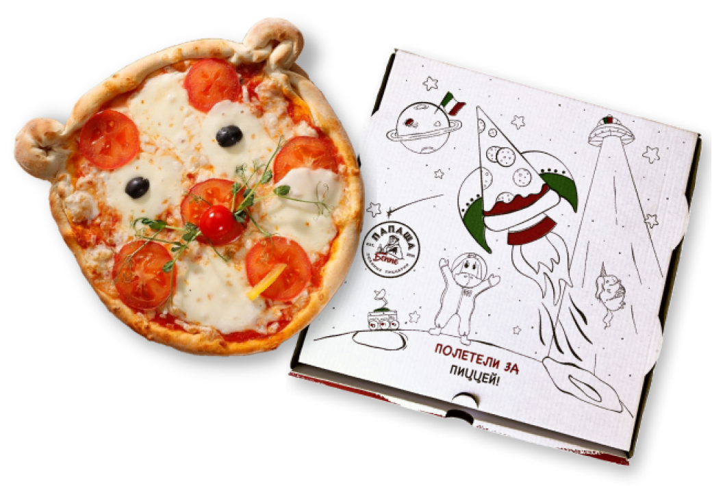 Посмотреть менюК вам домой детская пицца приедет в увлекательной коробке-раскраске